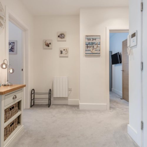 Spend a lovely morning strolling along the Swanage Pier (1 mile) and soak up the panoramic views of Swanage Bay. This wonderful Victorian pier also offers opportunities for fishing, diving and boat trips. In the afternoon, head to Durlston Country Park (1.5 miles) to explore the nature reserve and Durlston Castle. In the evening, come home to the apartment’s private front garden to share an al fresco dinner. Park your car in the private off-road parking space and access your delightful two-bedroom apartment via this smart building’s shared entrance.