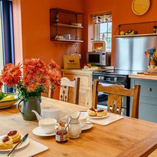 After spending some quality time together enjoying the local area, head back to the cottage to relax and unwind whilst planning the next day’s activities. Step into the property through the covered entrance and into the hallway where you can discard coats and boots. Off the hall is the handy cloakroom which has a WC. Head into the lovely lounge, which is equipped with comfortable seating, a wood burner and Smart TV, a perfect place to catch up on your favourite show or movie. Move back through the hallway and into the spacious kitchen which has a dining table that will seat four if you have friends or family visiting. The kitchen is fully equipped and has everything you need to be able to enjoy a self-catered break utilising the fantastic local produce from the farm shop across the road. Upstairs is a wonderful bedroom with super king size bed and an en-suite shower room.
