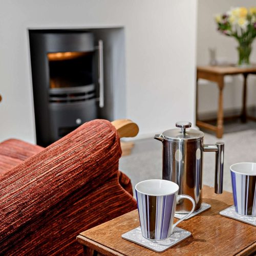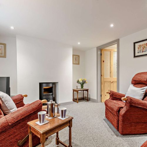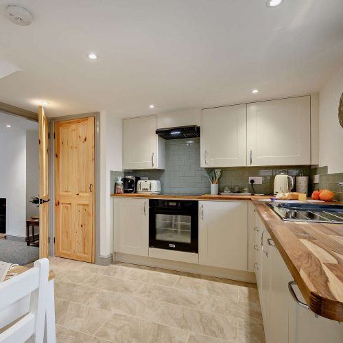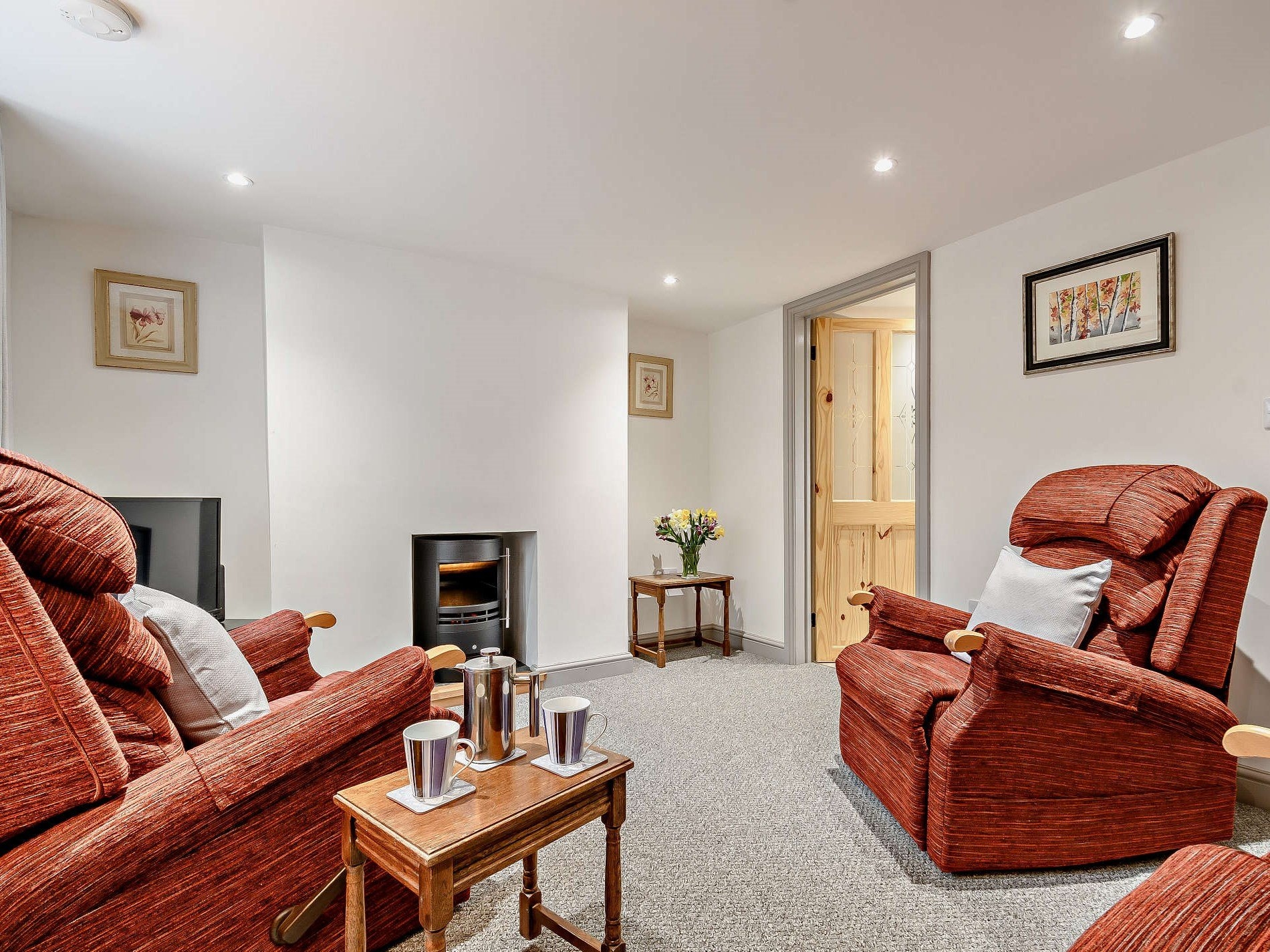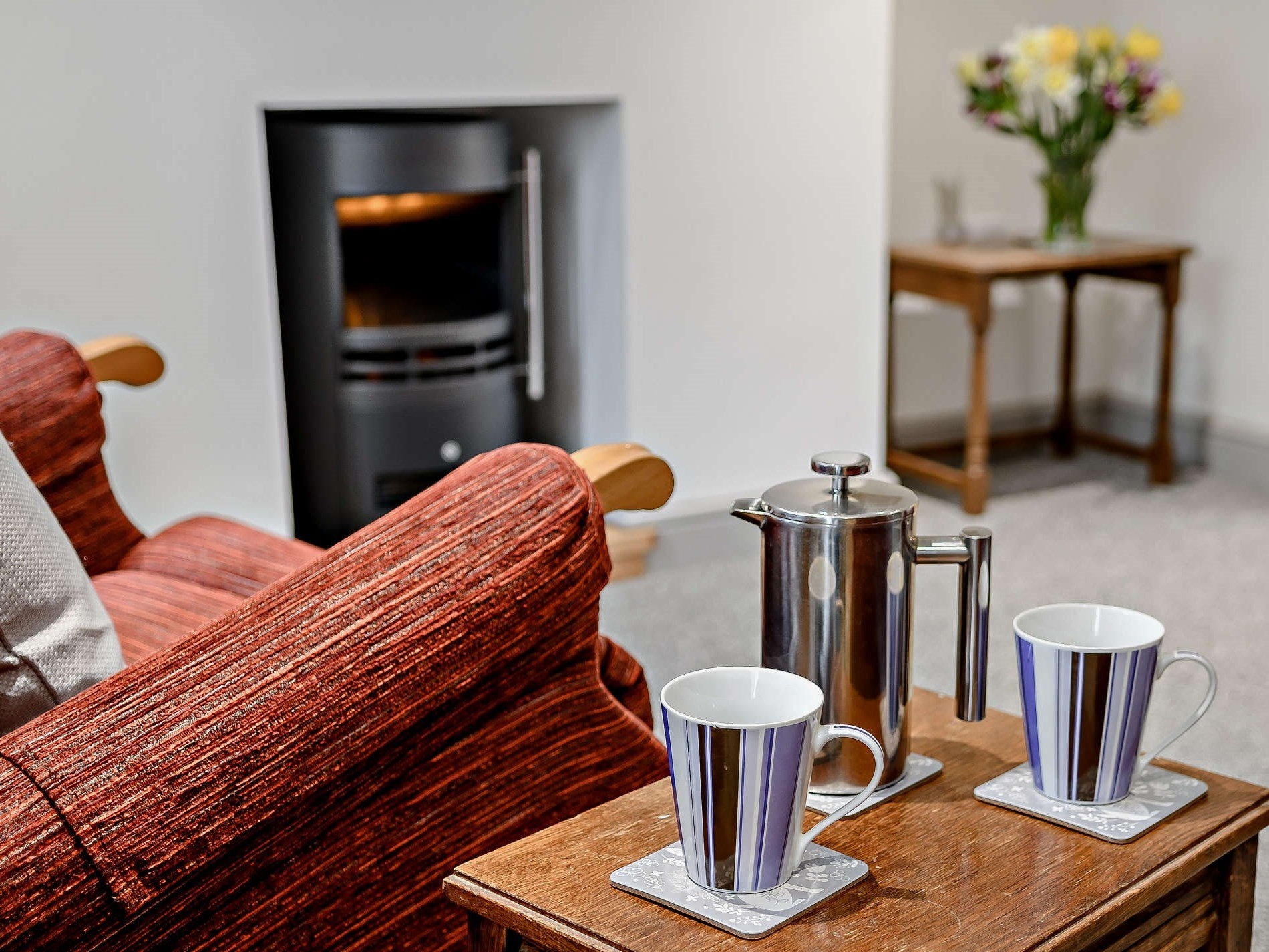 The cottage forms part of a terrace and is set back from the road. It is accessed via a small porch with space for coats and boots after a day of exploring the area and walks from your doorstep. From here, you will enter a light and spacious living area, where you can relax in the comfortable seating in front of the TV with Freeview box and flame-effect electric wood burning style fire. The property also benefits from underfloor heating throughout for those chilly evenings. The kitchen is situated at the rear of the cottage, is well-equipped and offers everything you would need for your stay, along with a dining space with a table and chairs. The cottage-style staircase leads up to a small landing, where guests have the choice of two bedrooms: a double room with a dressing room, and a twin room. There is also a shower room with a double rain fall shower and WC.